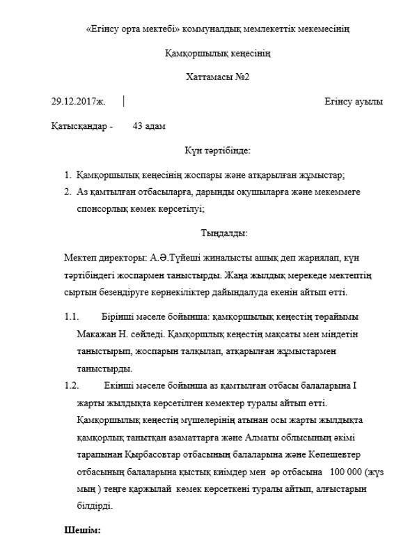 Қамқоршылық кеңесі » "Егінсу орта мектебі " коммуналдық мемлекеттік мекемесі